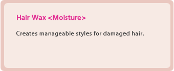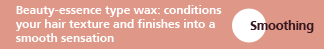 Spread wax onto your palm as required. Blend carefully into your hair concentrating on areas where damage is frequent. Use fingers to comb through your hair and to achieve a silky smooth finish for a manageable style.
